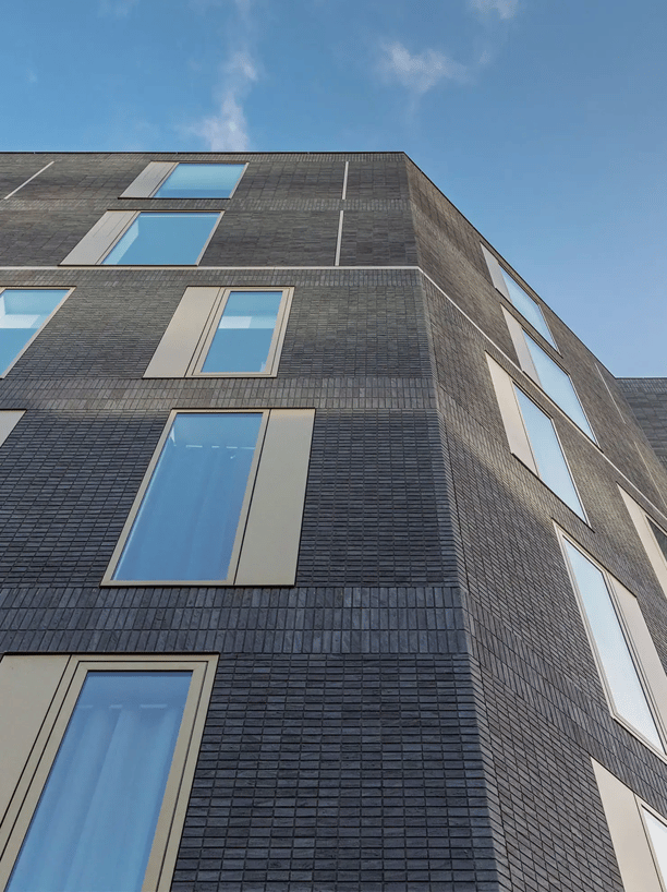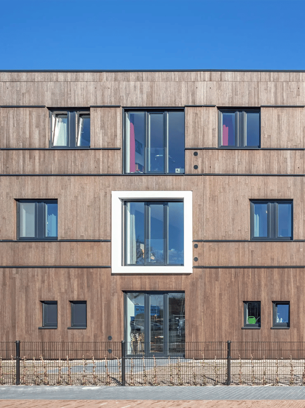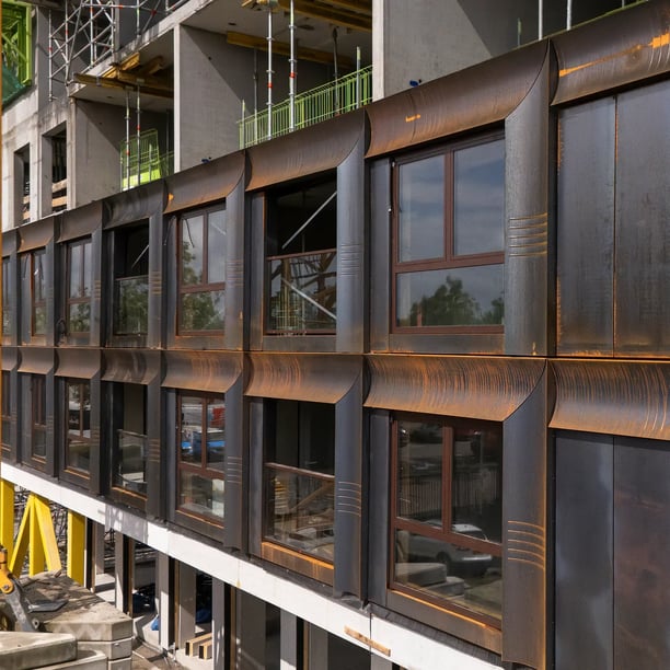Nieuw woongebouw met prefab cortenstaal gevelelementen