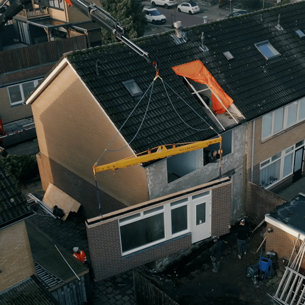 De hoekwoning aan de Sparrenlaan wordt gerenoveerd naar een NOM-woning met biobased en circulaire materialen.