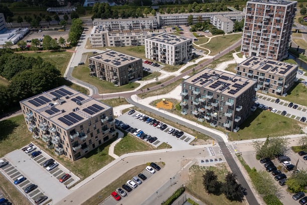 Drie gebouwen met 114 appartementen, volledig gasloos